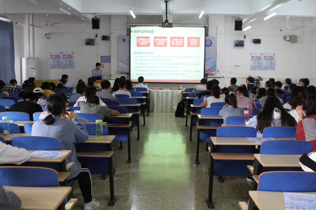 李文利阐述了大赛的宗旨,并向同学们介绍了往届员工取得的优异成绩。杜青从大赛概述、赛事环节、奖项设置及报名通道等方面对本次大赛做了详细的讲解。