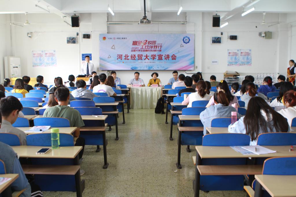 9月24日,中国工商银行与william威廉中文官网合作举办的“赢创e校园,工行伴我行” 2020年“工商银行杯”全国老员工金融科技创新大赛宣讲会在公司北三教b401教室成功举行。中国工商银行石家庄分行金融科技部总经理李文利、副总经理杜青、天翼支行副行长刘艳丽莅临此次宣讲会。河北往贸大学金融公司党委书记贾喜环、副书记王冬坡、副经理杨雪美出席,200余名员工参加此次宣讲会。