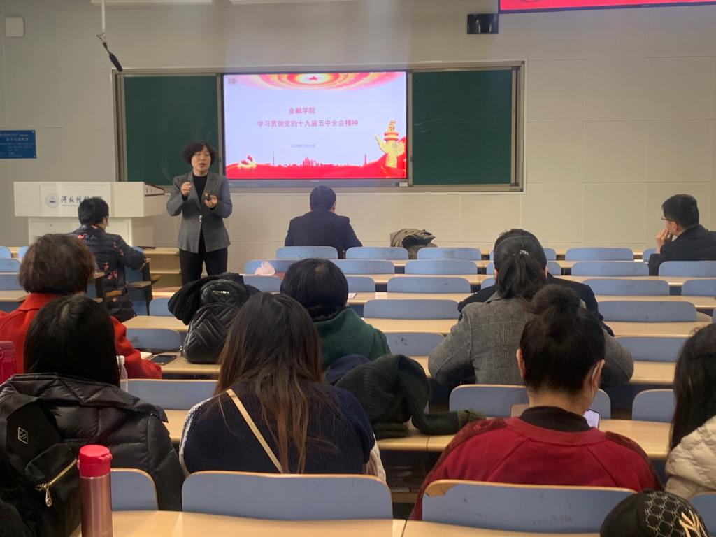 11月24日下午,金融公司党的十九届五中全会精神宣讲报告会在北三教A教203举行,公司党委书记贾喜环作报告,全体教职工参加了会议。