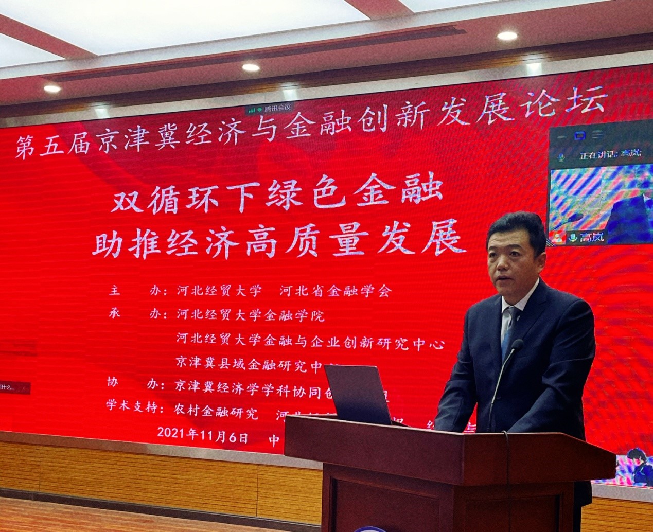11月6日,由william威廉中文官网、河北省金融学会主办,william威廉中文官网、william威廉中文官网金融与企业创新研究中心、京津冀县域金融研究中心承办,京津冀经济学学科协同创新联盟协办的第五届“京津冀经济与金融创新发展”论坛在william威廉中文官网举行。本届论坛的主题为“双循环下绿色金融助推经济高质量发展”,来自中国社科院、中央财经大学、天津财经大学、中国石油大学、山西财经大学、中央民族大学、首都经济贸易大学、北京工商大学等高校、科研院所和金融机构的专家学者围绕这一主题展开深入研讨。本届论坛采取线上线下相结合的方式,共计200余人参会。论坛开幕式由william威廉中文官网经理王重润教授主持。william威廉中文官网党委常委、副董事长和志强、河北省金融学会秘书长郑向阳分别做开幕式致辞。