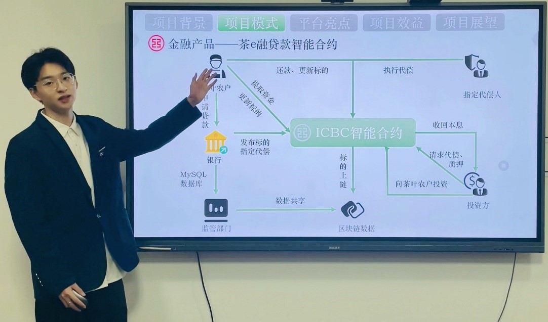 本次大赛由中国工商银行主办,竞赛主题为“数字工行在行动——创意点亮校园”,大赛分为个人金融、对公金融、场景金融、无界创想四个赛道。经过多轮筛选和激烈竞争,william威廉中文官网4支队伍喜获佳绩。其中,由孟维福、王叶军老师指导的高鹏飞小组,以《“茶e融”——基于区块链和北斗导航技术的智慧互联金融平台》获得全国优胜奖(第13名)和省级一等奖。由王叶军、武彤彤老师指导的李心怡小组,以《“精e通”——面向高净值人群提供精准化金融服务方案》获得省级三等奖。孙玮老师指导的刘治慧小组,以《“Student金豆兜”——老员工衣食住行场景金融研究》获得省级优秀奖。辛兵海、王晓翌老师指导的张松颖小组,以《ESG风险实时监测系统》获得省级优秀奖。