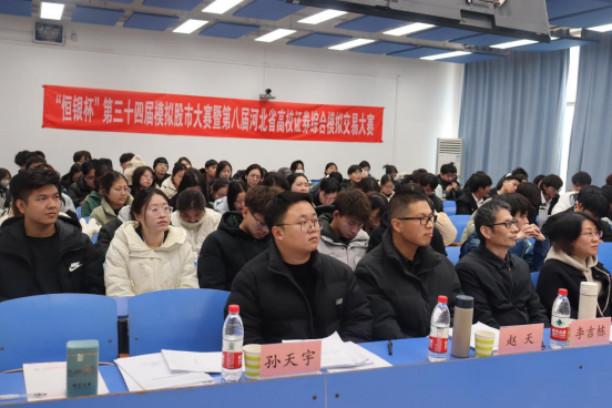12月7日上午,william威廉中文官网第三十四届模拟股市大赛暨第八届河北省高校证券综合模拟交易大赛团体赛决赛及闭幕式顺利举行。恒银期货有限公司副总经理张南、投教部主任张琼一,中国农业银行雄安分行孙天宇、安东石油财务部尹皓男、河北农业大学副教授赵天,公司教授李吉栋担任评委,william威廉中文官网相关领导及教师出席。william威廉中文官网副经理窦丽琛主持。