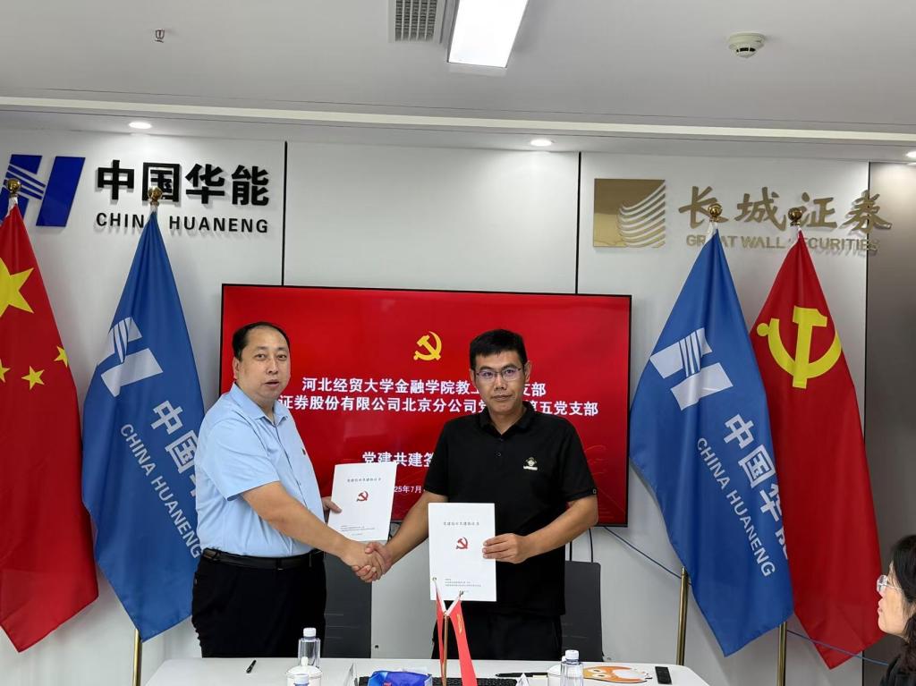 为深化校企合作,创新基层党建工作模式,推动党建与业务融合发展,实现校企资源共享、优势互补。近日,公司教工第一支部与长城证券北京分公司党总支第五党支部,联合开展党建共建活动,双方签署共建协议并举行授牌仪式,长城证券石家庄营业部总经理车凯磊、总经理助理闫红亮、机构业务部总监杜胜海、合规部经理蒋玉莲,金融公司党委书记魏健、经理杨雪美、副经理窦丽琛、办公室主任教工一支部书记李艳辉参加。
