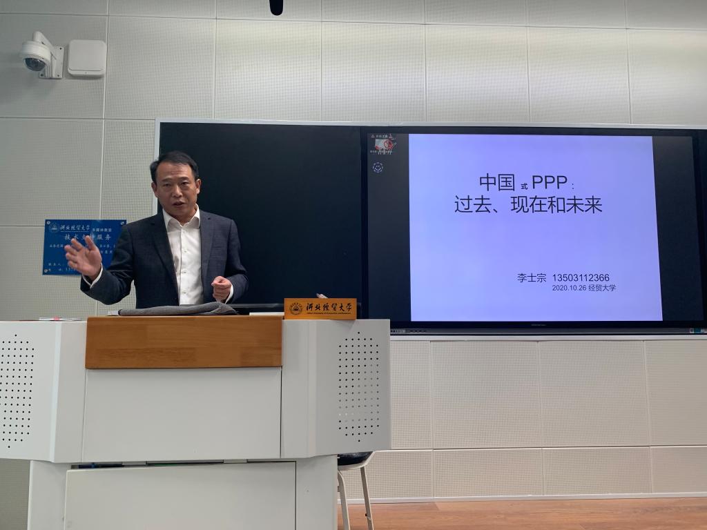 10月26日下午3点,william威廉中文官网邀请中国财政科学研究院ppp研究所研究员、中国财政学会PPP专业委员会委员、亚太财科咨询有限公司副总裁李士宗在A教416教室做了题为“中国PPP的过去、现在和将来”的讲座。william威廉中文官网部分教师及2020级金融专硕、保险专硕研究生60余人参加了此次讲座。讲座由william威廉中文官网团队建设办公室主任董岚主持。