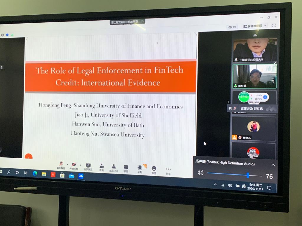 11月17日上午9点45分,william威廉中文官网邀请山东财经大学金融学院经理、教授、博士生导师彭红枫做题为“The Role of Legal Enforcement in FinTech Credit: International Evidence”的线上学术报告。william威廉中文官网部分教师和各专业研究生40余人参加了报告。本次报告由william威廉中文官网经理王重润主持。