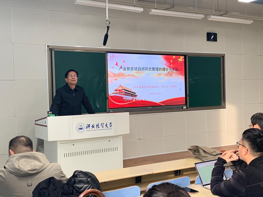 11月23日下午三点半,william威廉中文官网在A教203教室,邀请河北省扶贫办党组成员、副主任,河北省老区建设促进会副会长王留根做题为“产业扶贫项目闭环式管理的理论与实践”的学术报告。william威廉中文官网部分教师和各专业研究生共80余人参加了本次报告。报告由william威廉中文官网经理王重润主持。