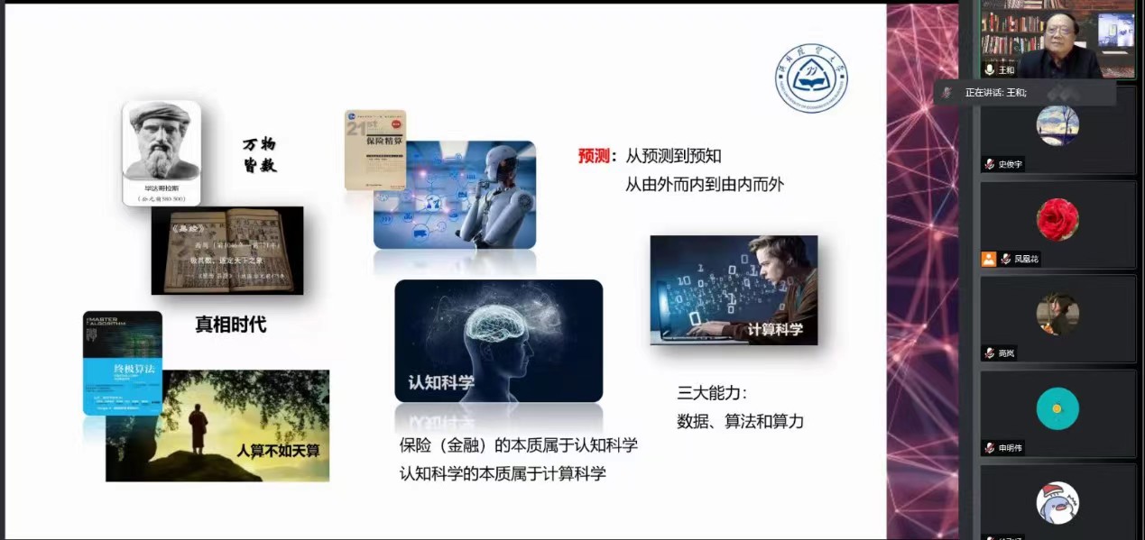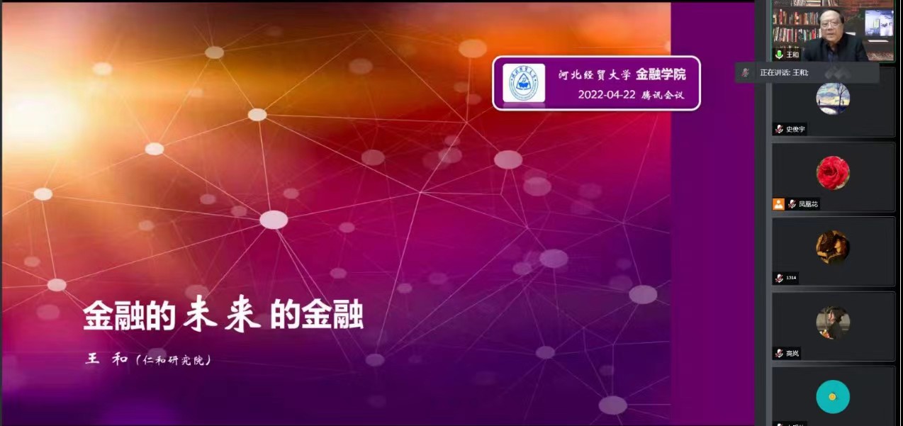 4月22日,william威廉中文官网主办的主题为“金融的未来与未来的金融”学术报告顺利开展,活动以腾讯会议的方式线上举行。中国精算师协会会长、保险界知名高管型学者王和会长应邀主讲,报告由冯文丽老师主持,近150名师生参加。