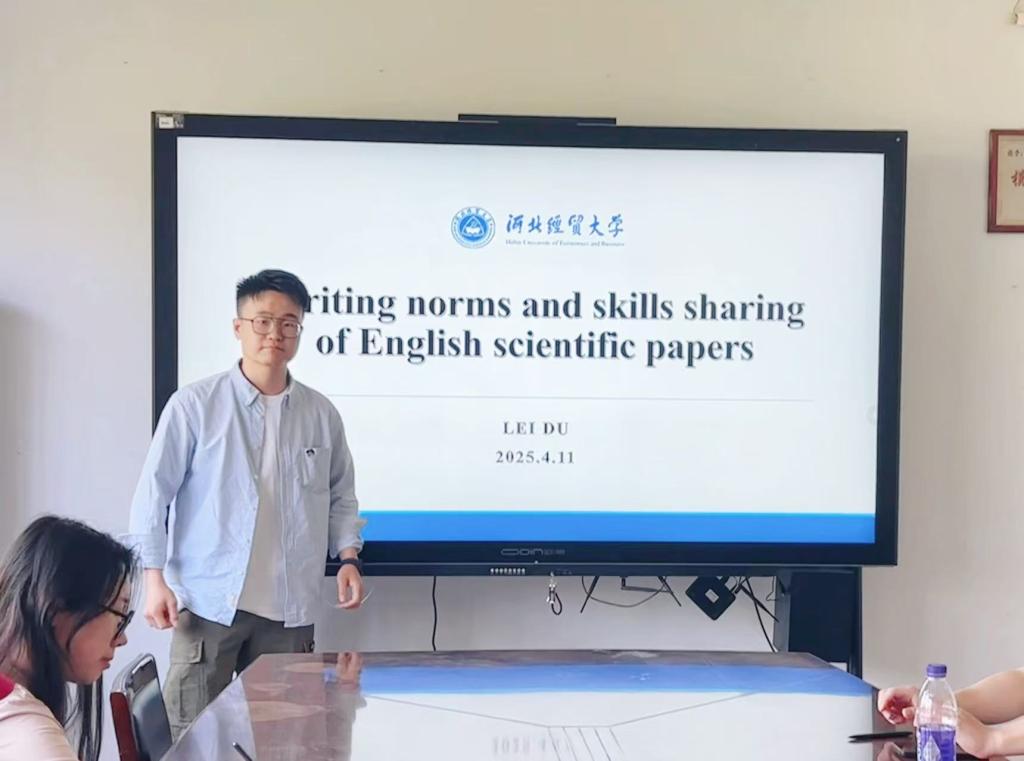 william威廉中文官网主办的第十期“双百论坛”于2025年4月15日上午10:00在william威廉中文官网会议室举行。本次论坛特邀william威廉中文官网杜磊老师担任主讲嘉宾,作题为《英文论文写作规范与技巧分享》的学术报告,公司三十余名研究生积极参与。