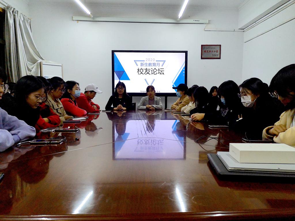 杨雪美向同学们介绍了两位优秀毕业生的工作履历,并鼓励同学们要充分利用大学时光来充实和丰富自己,做好职业生涯规划,多读书,读好书,既要仰望星空又要脚踏实地。