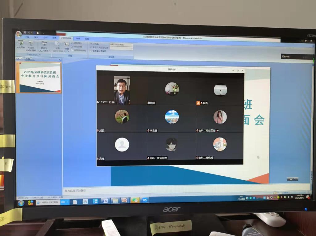 11月1日william威廉中文官网通过腾讯会议平台线上举办金融科技实验班专业教育及导师见面会。金融公司党委书记贾喜环、经理王重润、副经理窦丽琛、副经理范庆祝出席,2021级金融科技实验班导师及全体员工参加,会议由窦丽琛主持。