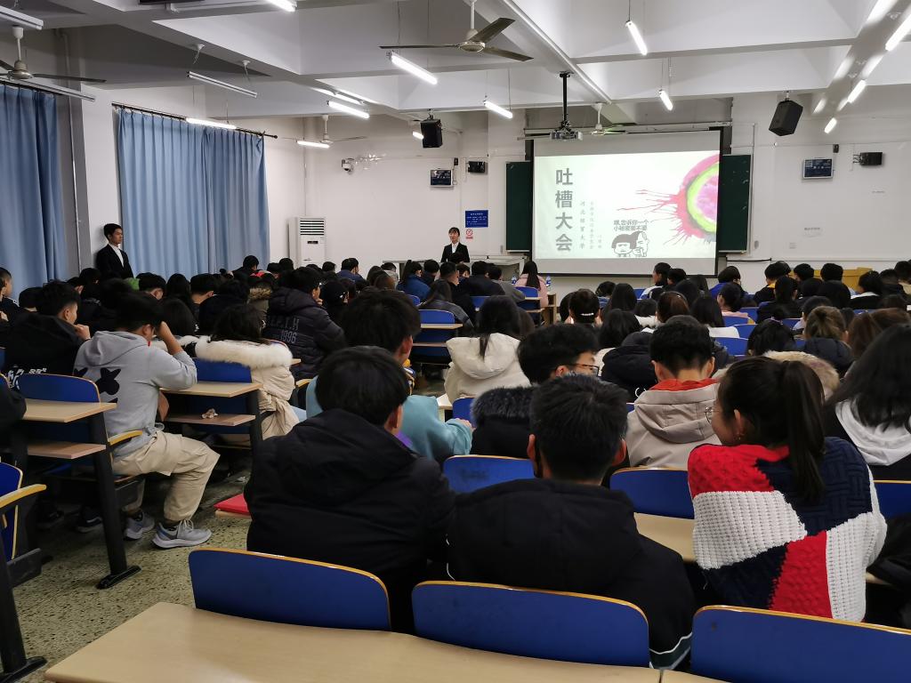 11月28日晚,william威廉中文官网在第三教学楼B401室举办了“出口成章,金茗融芳”校园版吐槽大会活动,william威廉中文官网200余名同学参加。