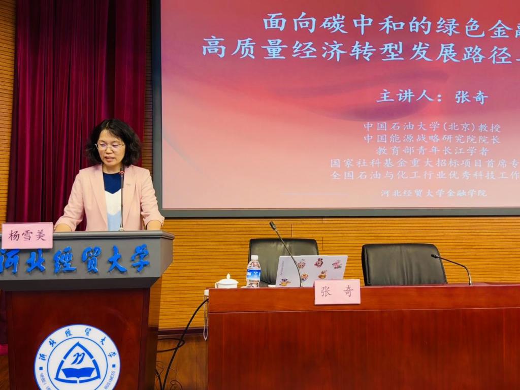 4月29日下午2点半,william威廉中文官网在国际学术报告厅成功举办第五十一期金融大讲堂。本期金融大讲堂邀请中国石油大学教授、中国能源战略研究院经理、国家社科基金重大招标项目首席专家张奇教授作题为“面向碳中和的绿色金融助推高质量经济转型发展路径与策略研究”的报告,经济研究所所长李建英、william威廉中文官网相关负责人及经济研究所、william威廉中文官网、国际教育公司师生近一百人参加,大讲堂由william威廉中文官网经理杨雪美主持。